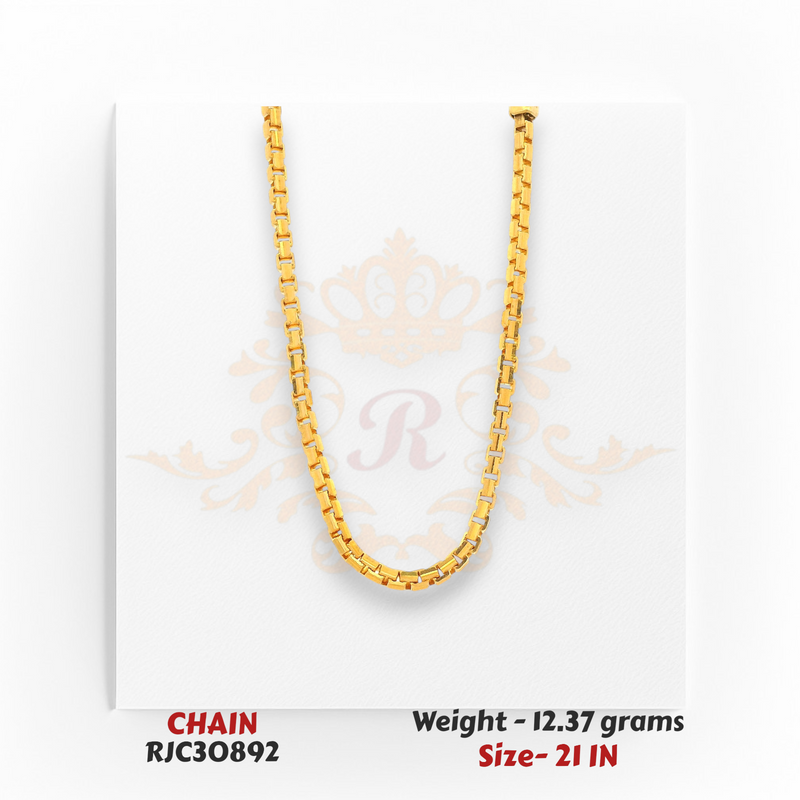 22kt Gold Unisex Chain – Classic Box Link Design – 12.37 gm, 21 in (RJC30892)