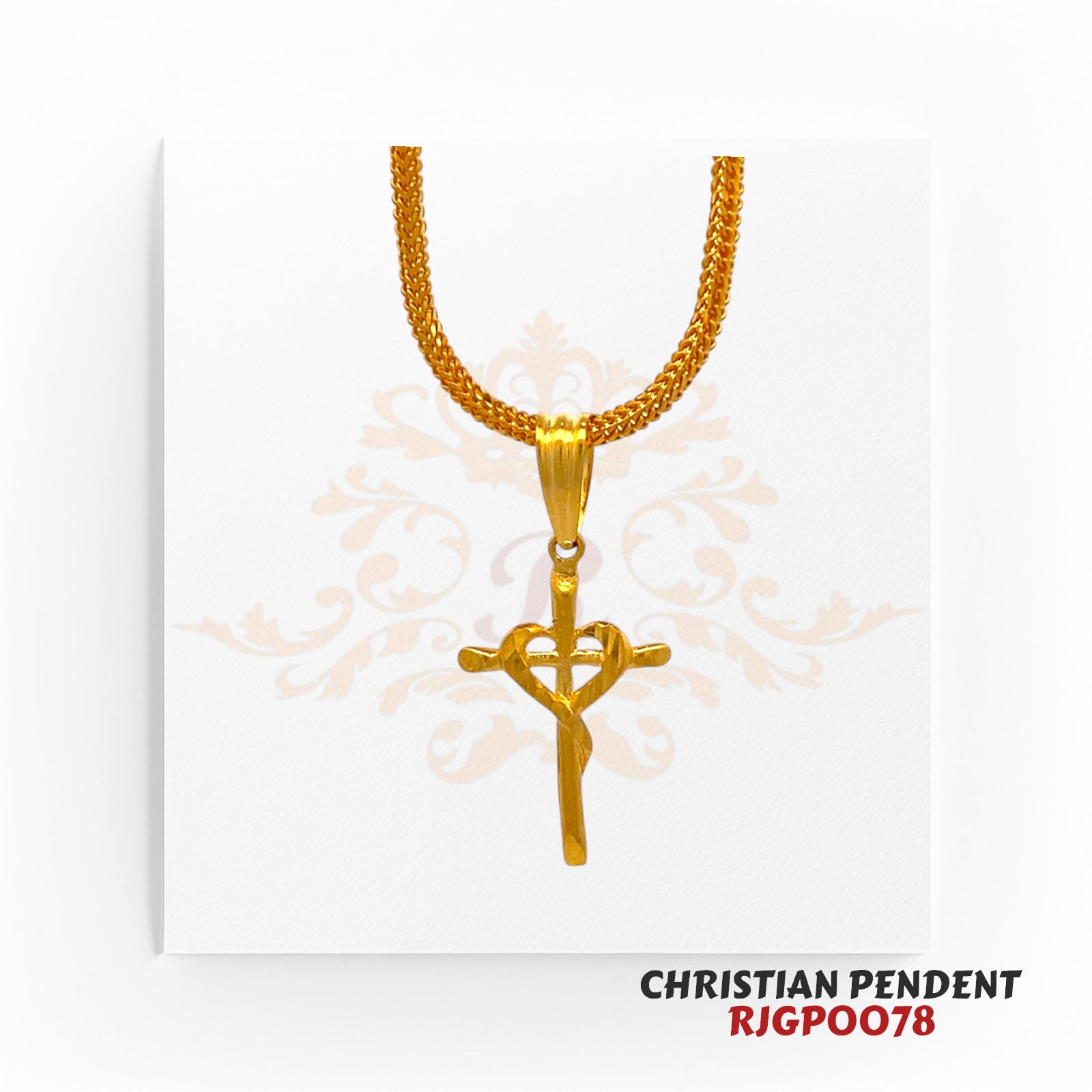 A unique and elegant expression of faith, the 22kt Gold Christian Pendant (RJGP0078) features a beautifully crafted cross intertwined with a heart, symbolizing love, devotion, and spirituality. This delicate yet meaningful design makes it a perfect accessory for those who cherish their faith.