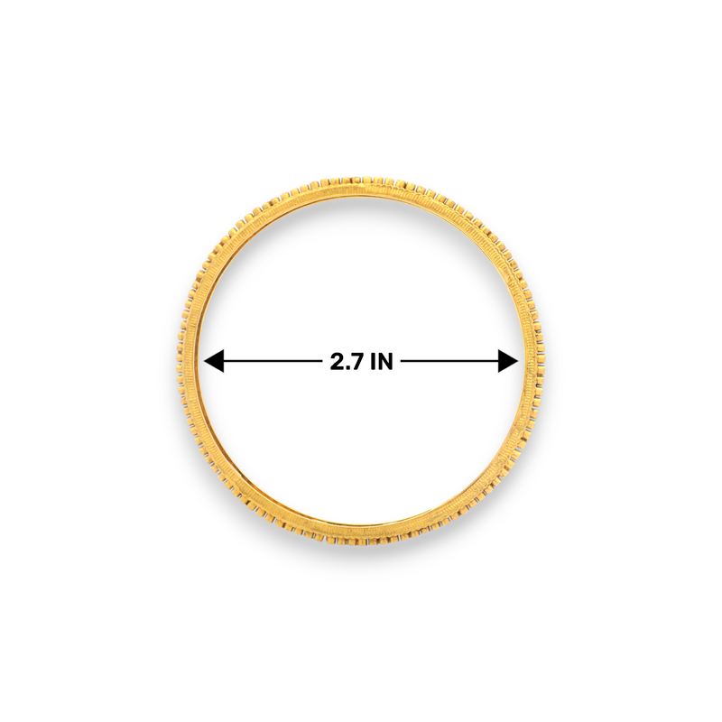 This stunning 22kt gold bangle set combines refined craftsmanship with an elegant stone-like patterned finish, giving it a dazzling and timeless appeal. Perfect for festive occasions, weddings, or elevating your daily wear, these bangles bring unmatched brilliance and sophistication to your jewelry collection.