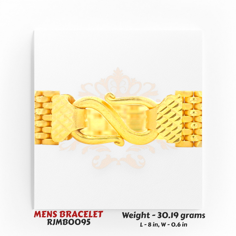 This handcrafted 22kt gold bracelet showcases a sophisticated mesh link pattern, blending strength and style for a timeless masculine look.