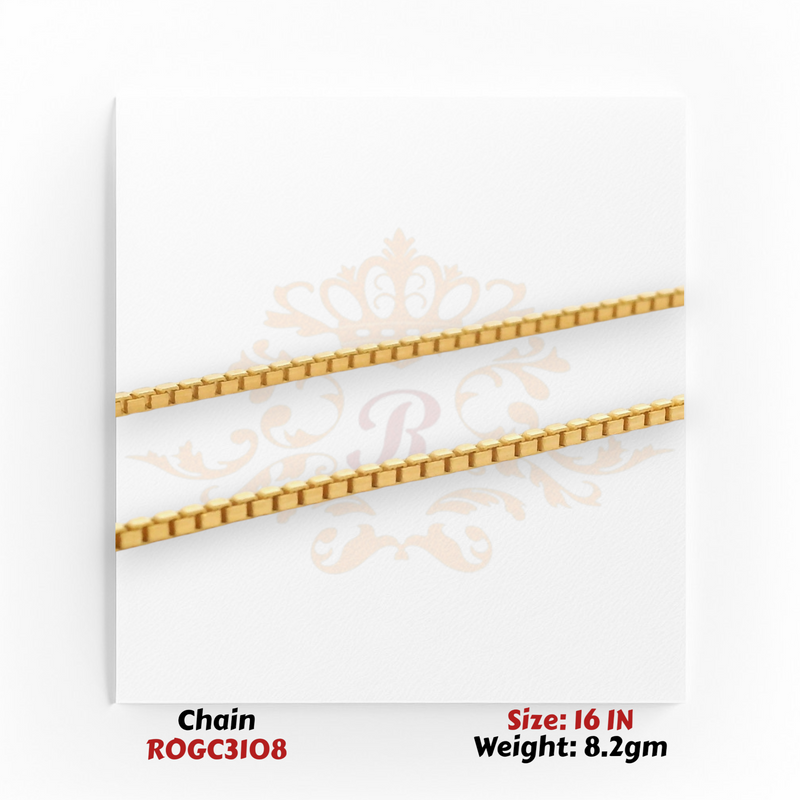 This charming 22kt gold chain from Regal Jewels features polished gold beads highlighted by a beautiful green centerpiece accent. Designed by Regal Jewels for those who love subtle color with classic gold, this piece offers a graceful and elegant look perfect for daily wear or light festive styling.
