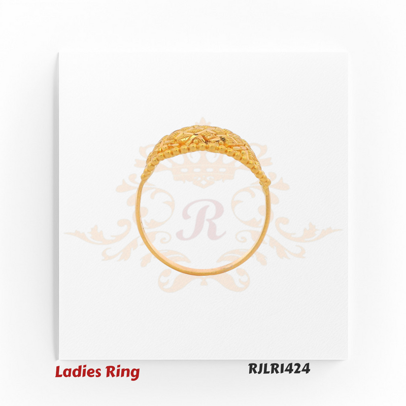 A beautifully crafted oval-shaped gold ring featuring an intricate lattice-textured surface bordered with polished gold beads. Its detailed design reflects a blend of traditional artistry and timeless charm, making it a standout accessory for any outfit.