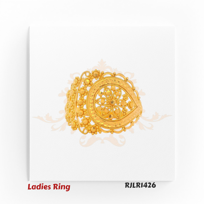 A captivating teardrop-shaped ring featuring intricate floral filigree artistry, framed with detailed bead accents. Its three-dimensional craftsmanship adds depth and elegance, making it a standout statement piece for traditional and festive occasions.