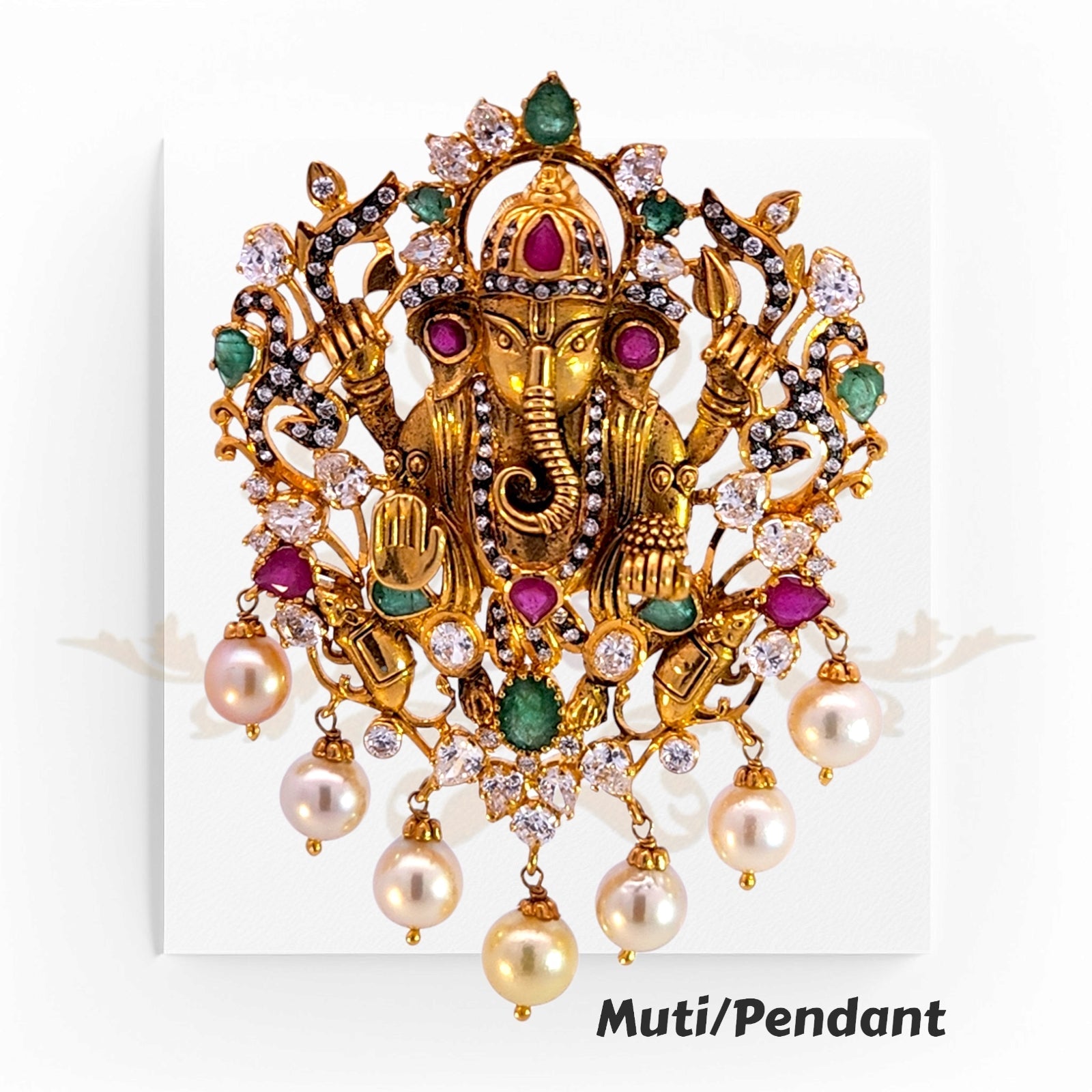 The ornate filigree work, combined with elegant pearl drops, gives this pendant a majestic and auspicious presence. Whether worn as a statement piece or kept as a sacred collectible, this pendant represents wisdom, success, and divine blessings.